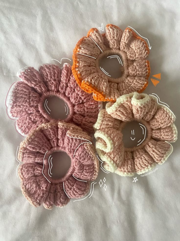 Handmade crochet scrunchies designed to add a gentle, cozy charm to everyday hairstyles.